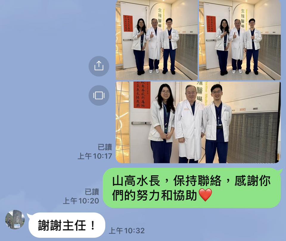 特別來生殖中心找我辭行,感謝老師這段日子的「魔鬼訓練」與疼愛,
